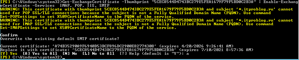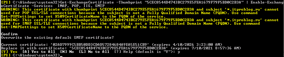 5. Выполнить импорт сертификата на все сервера клиентского доступа Exchange.