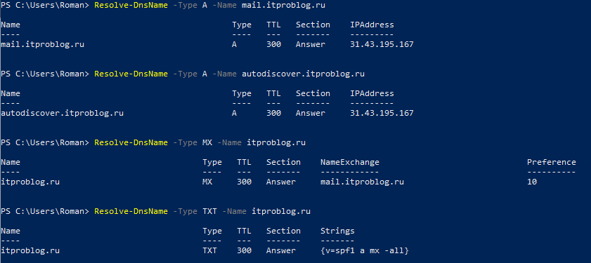 | autodiscover | A | IP-адрес почтового сервера | DNS запись для работы служб автообнаружения |