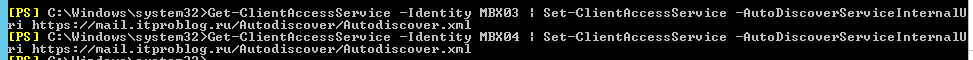 У каждой из виртуальных директория (за исключением виртуальной службы автообнаружения) в настройках необходимо указать URL адрес, который будут использовать внутренние клиенты и URL адрес, который будут использовать внешние клиенты. Этот URL адрес, может быть одинаковый как для внутренних клиентов, так и для внешних клиентов. В нашем случае будет именно так.