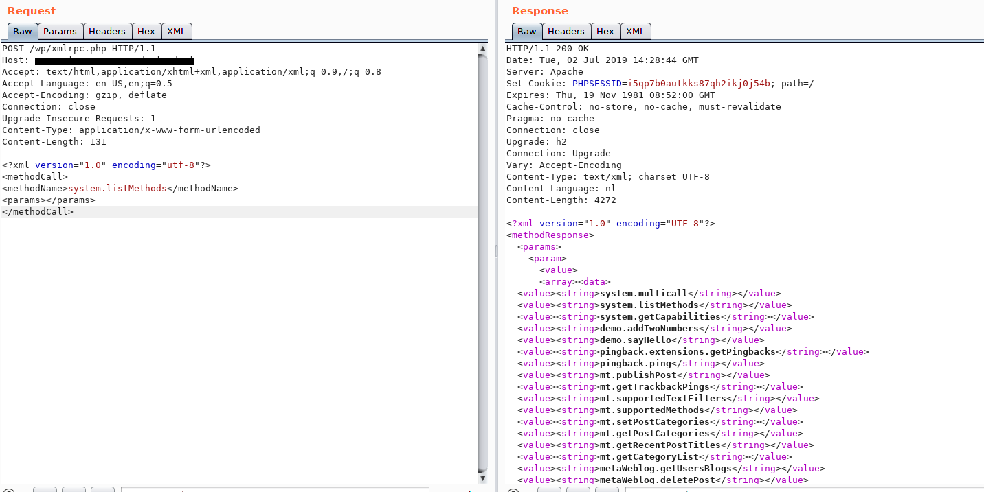 - Сделайте запрос POST к файлу xmlrpc.php со следующими данными POST (как показано на следующем изображении)
