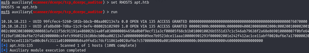 DCE/RPC — это система удаленного вызова процедур, разработанная для распределенной вычислительной среды. Эта система позволяет программистам заниматься разработкой распределенного софта так, будто все работает на том же компьютере, без необходимости волноваться за код, отвечающий за работу с сетью. Мы можем просканировать DCE/RPC и поискать службы, которые доступны через TCP. Для сканирования подойдет модуль из Metasploit Framework.