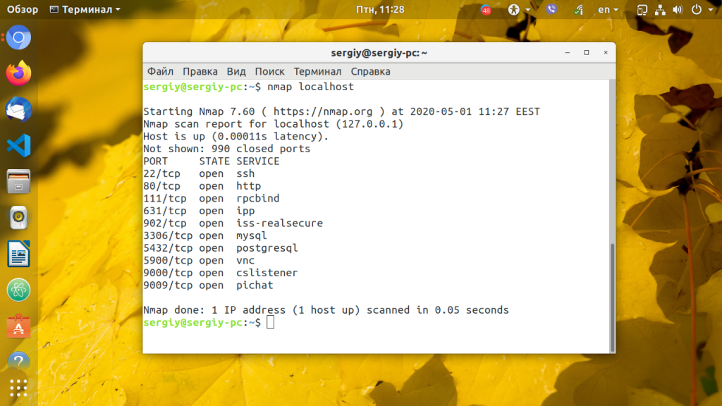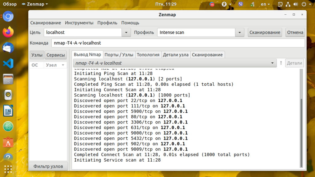 После завершения сканирования утилита вывела список открытых портов Linux.