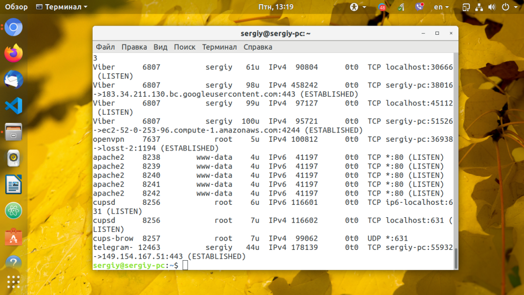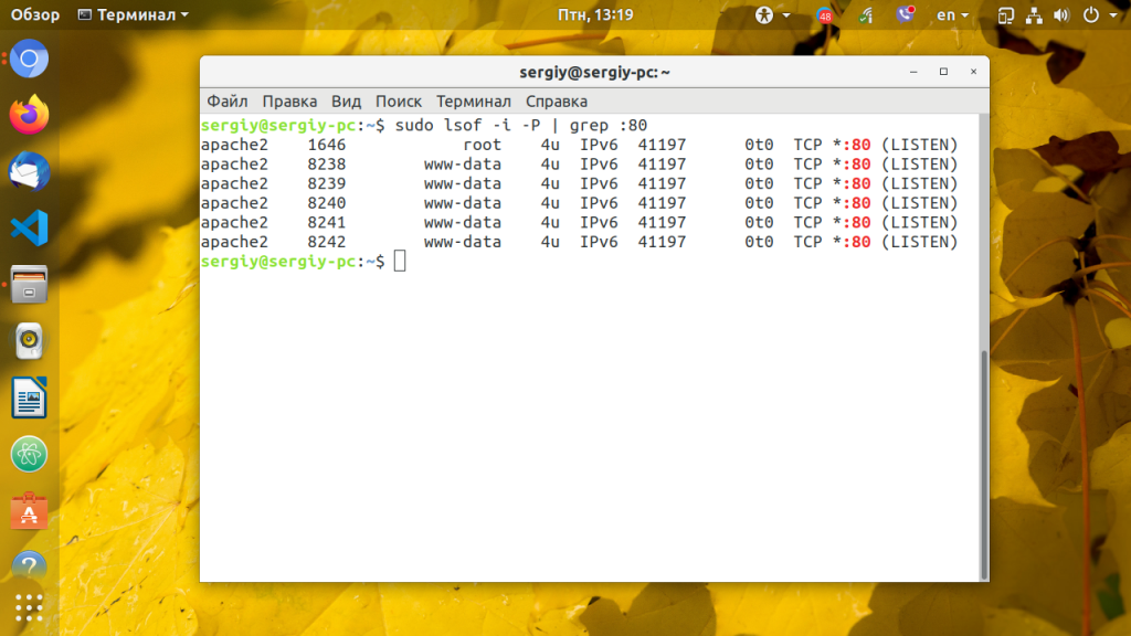 2. Проверка открытых портов в Linux с помощью утилиты lsof