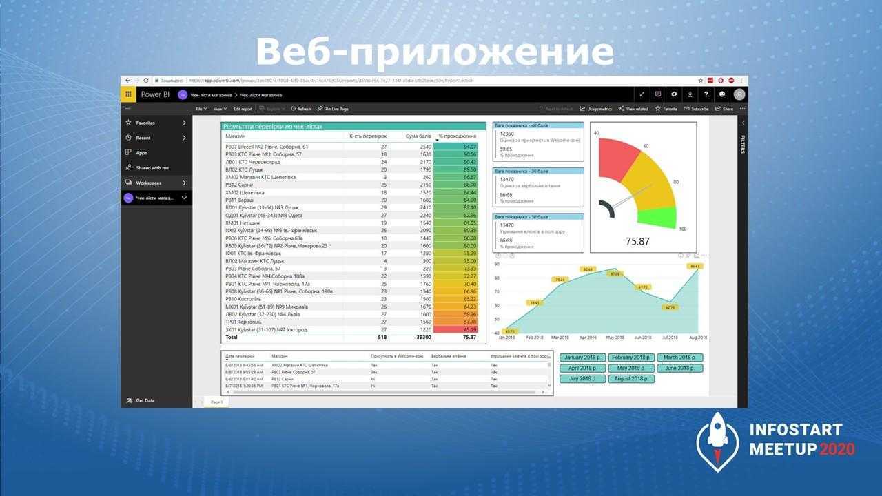 Вот так выглядит веб-приложение. По сути, это мы заходим на какой-то интернет-сайт, и нам показывают информацию, заранее сформированную в Power BI Desktop.