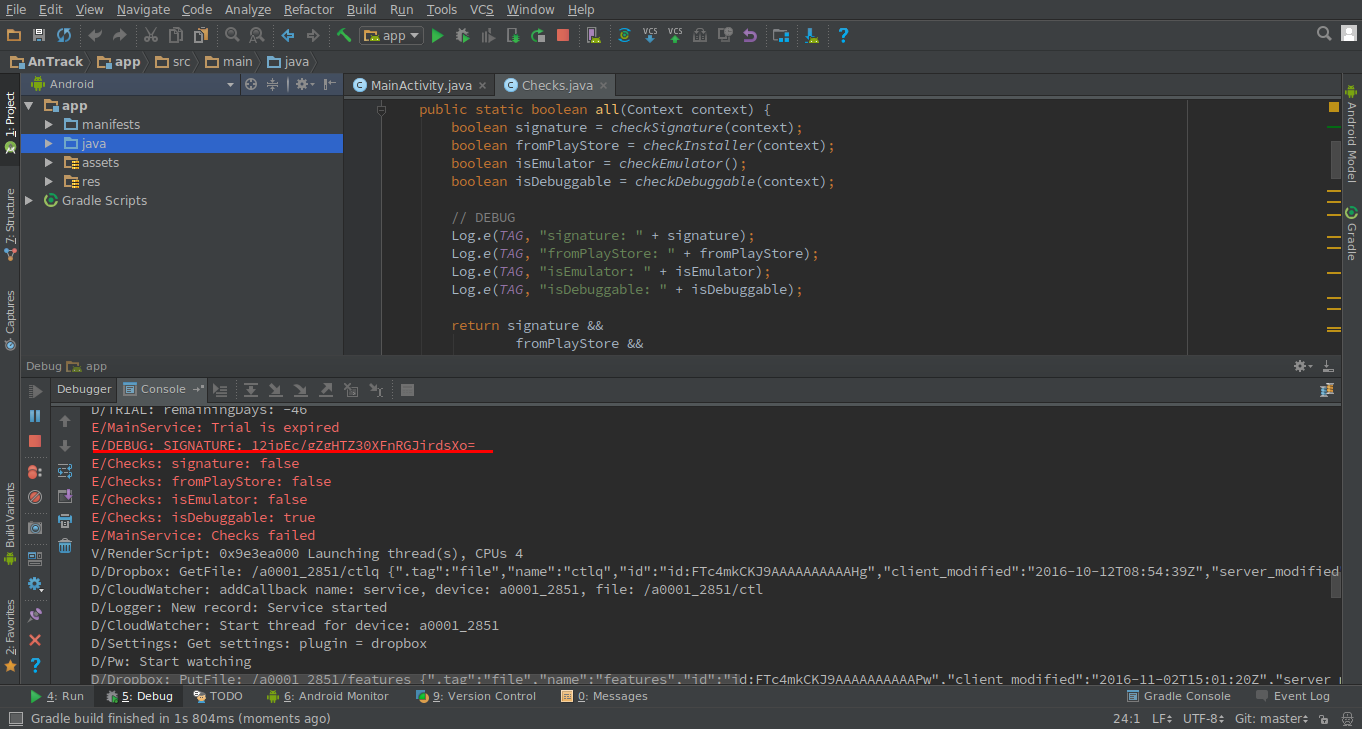 Собственно, метод довольно простой. Тебе необходимо вставить в приложение код, который будет получать хеш ключа текущей цифровой подписи пакета и сравнивать его с ранее сохраненным. Совпадают — приложение не было перепаковано (и взломано), нет — бьем тревогу.