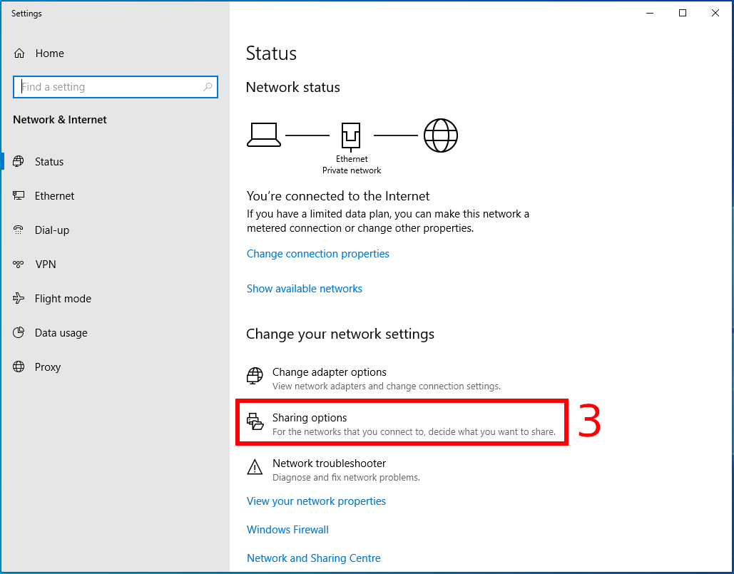 search for “Files and Printers Sharing” and make sure that the checkbox in the “Private” column is checked – if it is not there, then click the “Change settings” button, check the box and click OK.