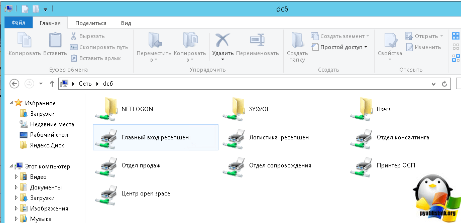Откройте теперь проводник и введите \\имя вашего сервера и вы получите список всех принтеров что на нем есть.