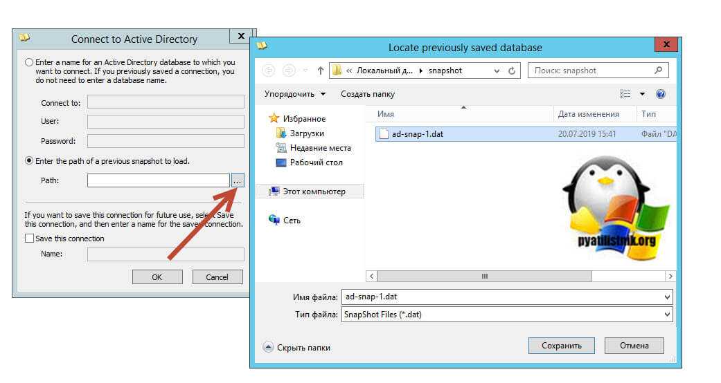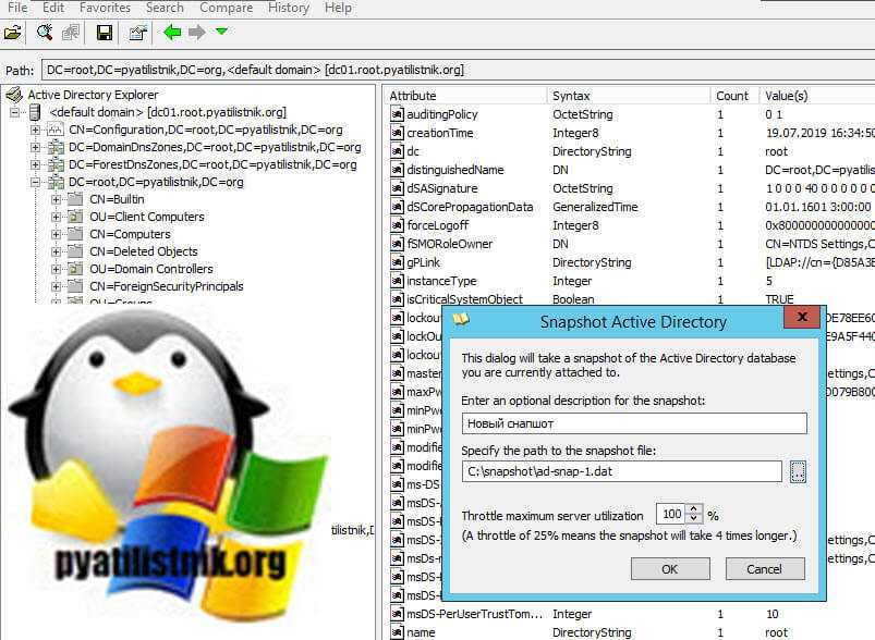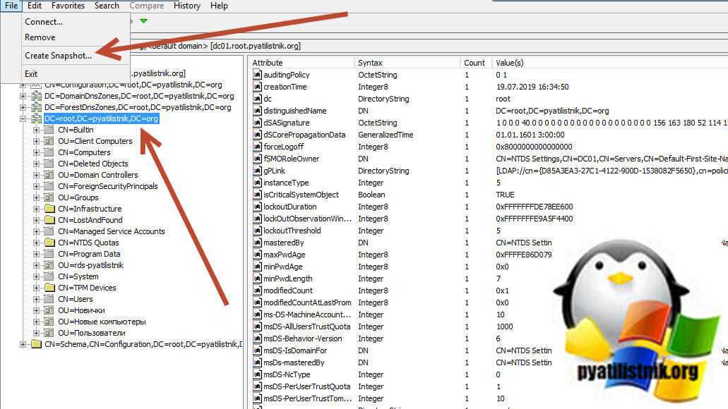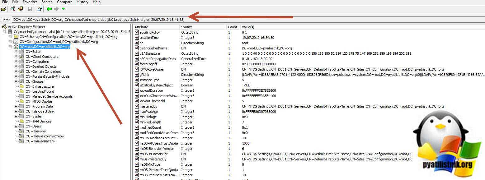 Как смонтировать и подключить снапшот Active Directory в NTDSutil