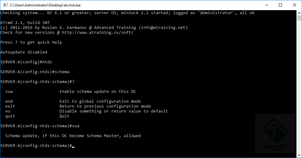 При этом параметр продолжает существовать (включить-выключить его можно на каждом DC в лесу Active Directory, но приниматься во внимание он будет только на владельце FSMO-роли Schema Master):. Разрешение на запись в Schema через параметр Schema Update Allowed(кликните для увеличения до 979 px на 514 px)Учебный центр Advanced Traininginfo@atraining.ruhttps://www.atraining.ru/