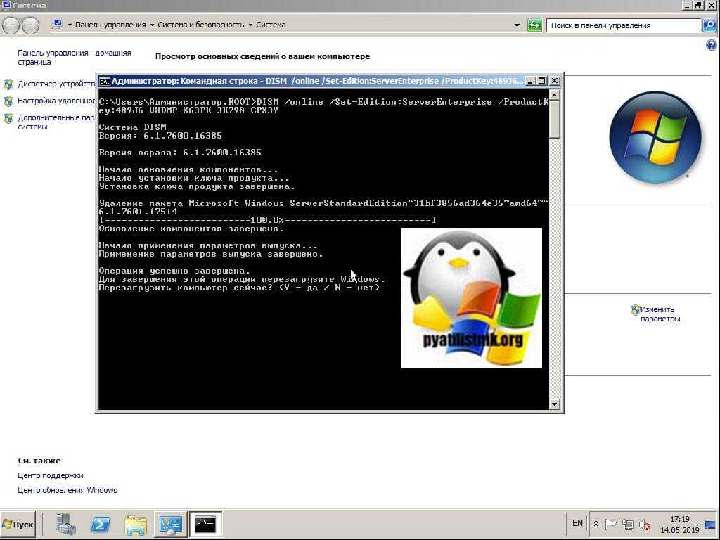 Я буду обновляться до ServerEnterprise, выше я приводил временный ключ или GVLK ключ, они потребуются для команды:
