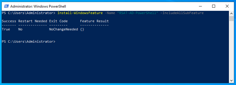 Install-WindowsFeature -Name "RSAT-AD-PowerShell" -IncludeAllSubFeature