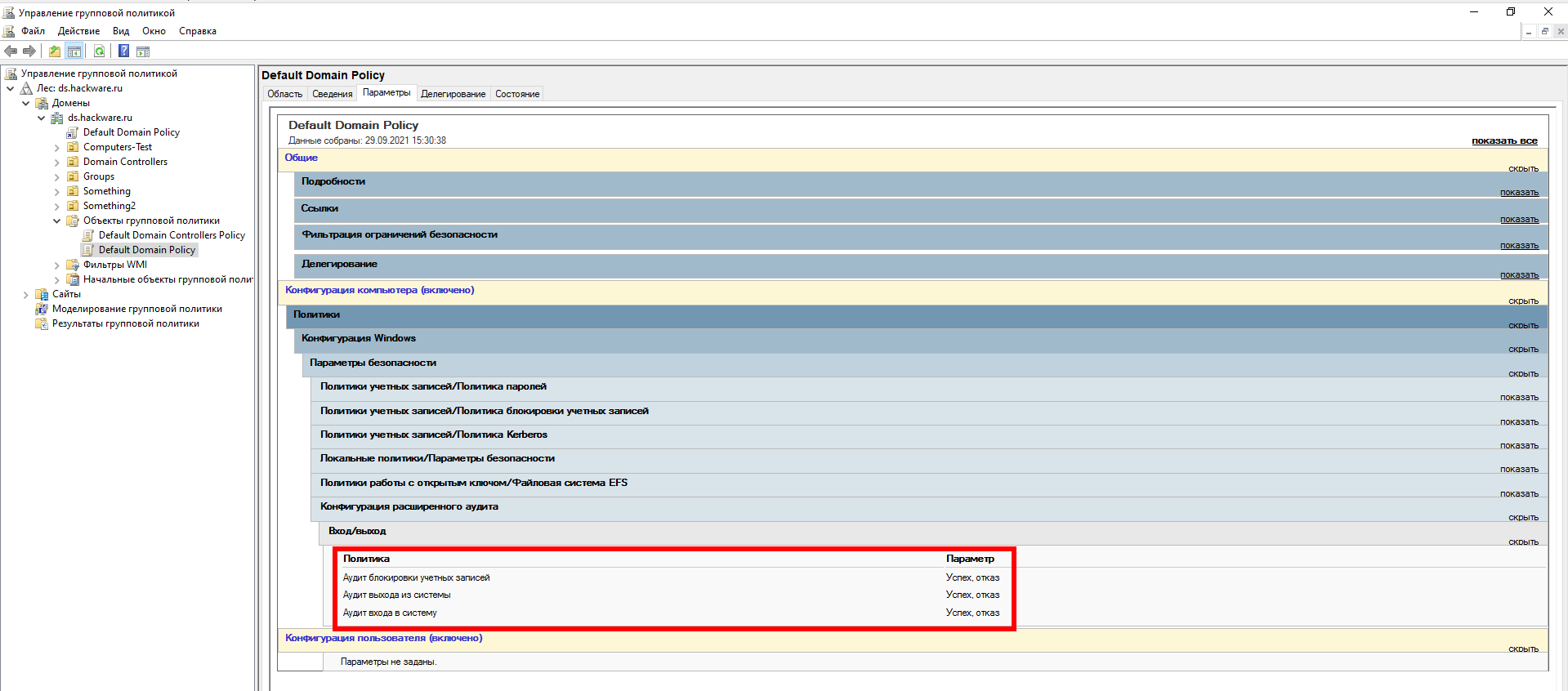 Самый простой способ включить эту политику — через консоль gpmc.msc, отредактировав Default Domain Controller Policy или используя Default Domain Policy на уровне всего домена.