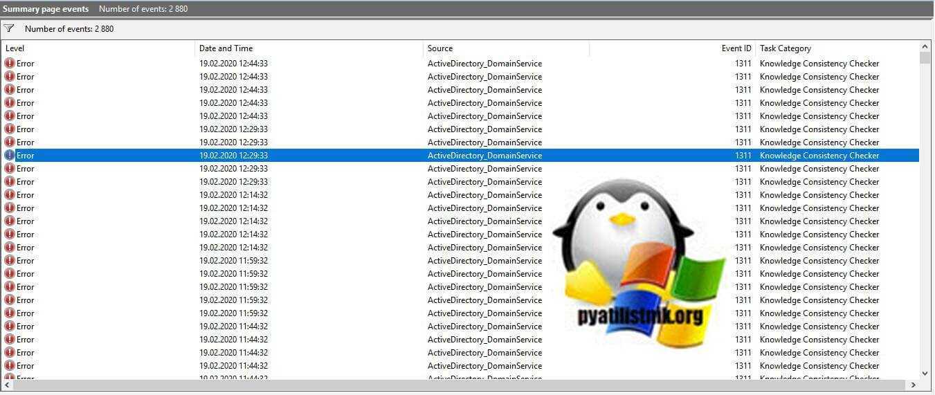 Источник события Идентификатор Строка события NTDS KCC 1925 Не удалось установить ссылку репликации для следующего раздела каталога, доступного для записи. -