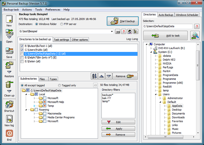 Personal Backup — это программа для сохранения личных данных в любую папку назначения. Эта папка может быть расположена на локальном фиксированном или съемном диске, на сетевом сервере Windows или на FTP-сервере. 32-разрядная версия программы работает под Windows 7, 8 и 10 (32- и 64-разрядная), Windows Vista, Windows XP и Windows Server 2003/2008(R2)/2012(R2), 64-разрядная только под Windows 7,8 и 10 (64-разрядная) и под Windows Server 2008(R2)/2012(R2).