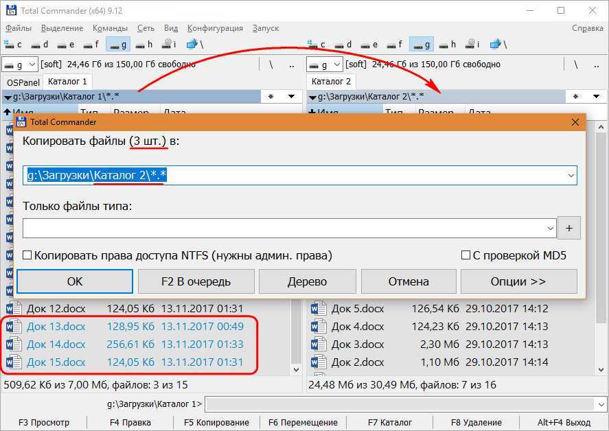 Далее можем нажать клавишу F5 или кнопку «Копирование» внизу окна. И всё выделенное будет скопировано на другую панель.