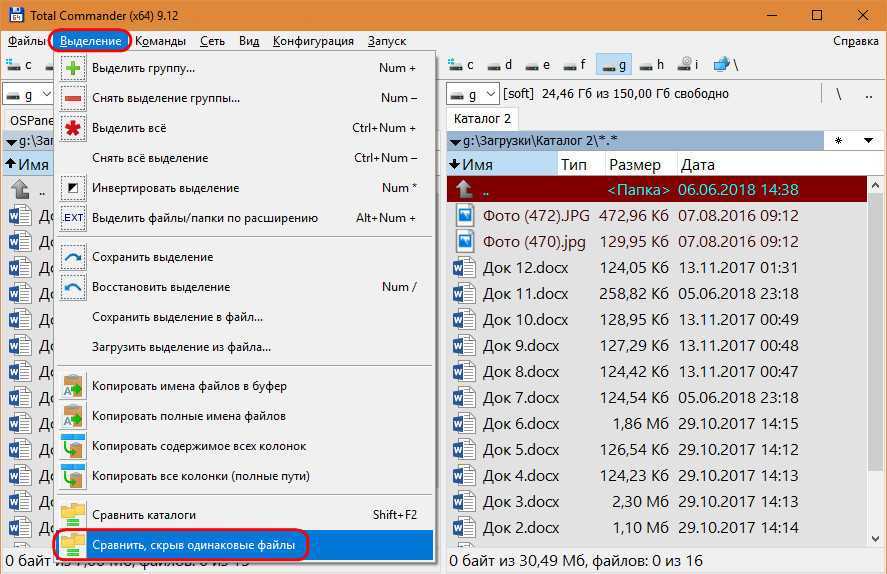 В этом случае Total Commander скроет все одинаковые файлы и представит нам на обозрение только те, что отличаются.