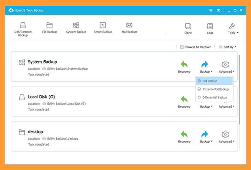 Бесплатное и надежное программное обеспечение для резервного копирования и восстановления позволяет пользователям создавать резервные копии системы и восстанавливать ее до исходного состояния в случае аварии, а также выполнять комплексные типы резервного копирования. ToDo Backup поддерживает жесткие диски емкостью 16 ТБ для любых критически важных планов резервного копирования, таких как резервное копирование сервера или массовое резервное копирование по сети.