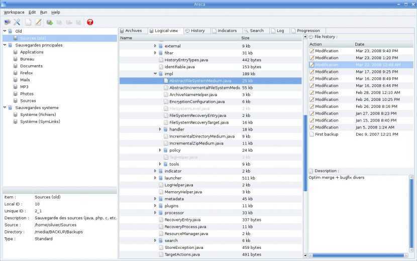 - Восстановление по дате : Areca позволяет вам восстановить ваши архивы (или отдельные файлы) по состоянию на конкретную дату.