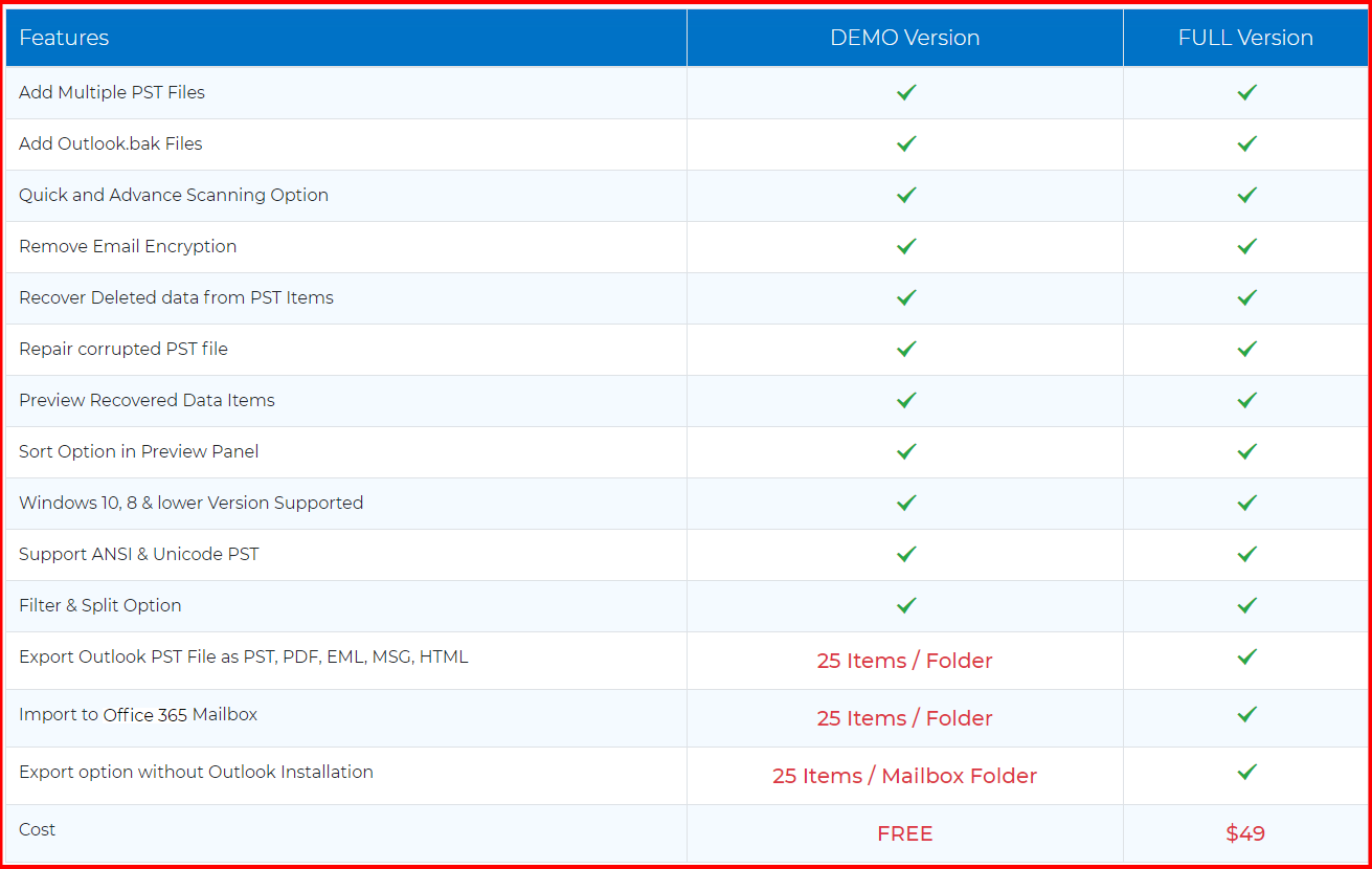 Программы SysTools доступны как в демонстрационной, так и в лицензионной версиях и Восстановление Outlook не отличается. Демо-версию можно бесплатно скачать прямо с официального сайта и использовать для тестирования. Однако демо-версия содержит некоторые ограничения по сравнению с лицензионной.