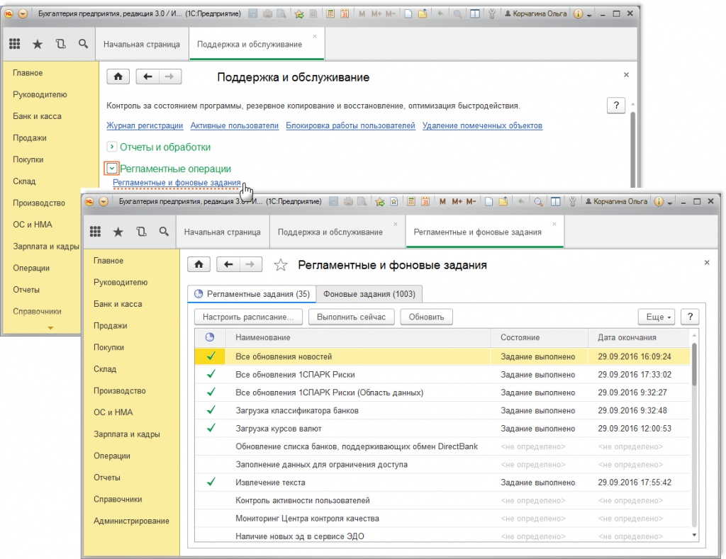 Конфигурация программы 1С отличается обилием большого количества фоновых заданий. К ним можно отнести постоянное обновление курса валют, классификаторов банков, новостной ленты, задач бухгалтера и многое другое. Каждый выполняемый программой процесс отбирает ресурсы, как данного софта, так и компьютера. Некоторые из них можно отключить, так как они не особо нужны.