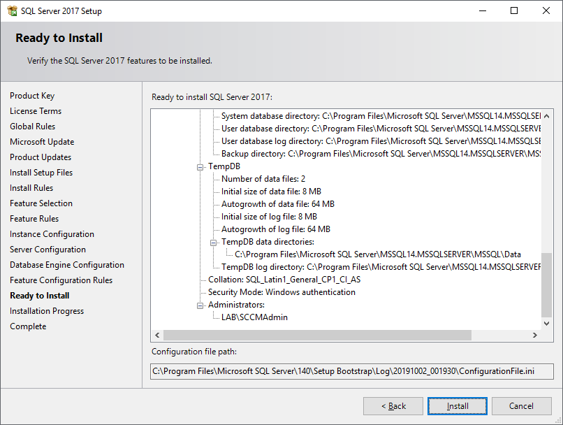 SQL Server 2017 is ready to install, click the Install button.