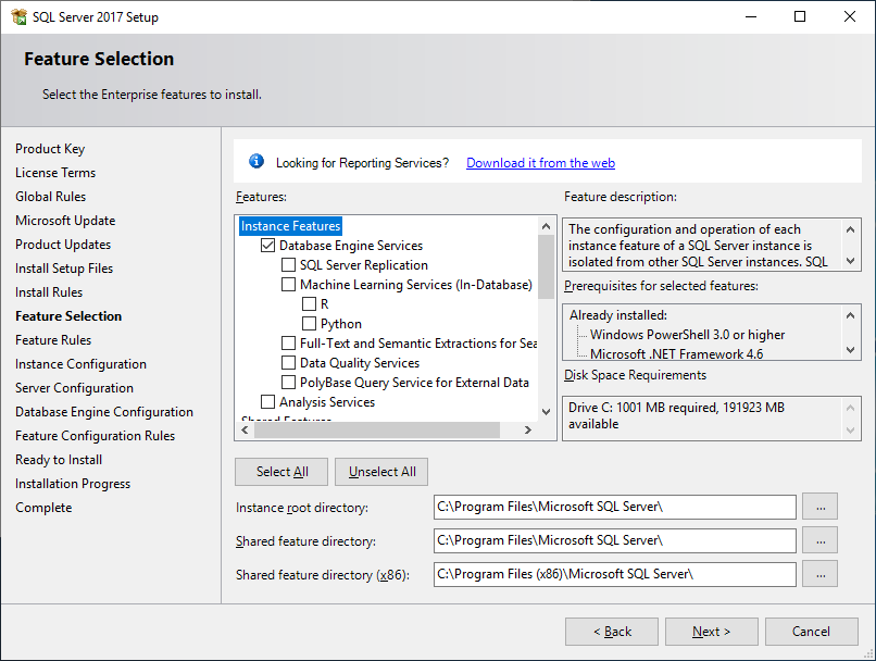 In the Feature Selection, tick the Database Engine Services then click Next.