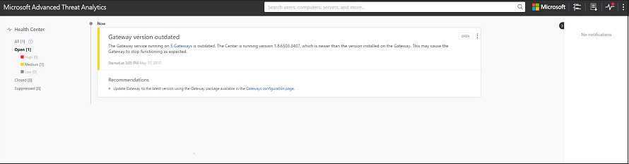 Консоль ATA предоставляет краткий обзор всех оповещений о подозрительных действиях в хронологическом порядке и позволяет получить дополнительные сведения о любой активности и связанных с ней действиями. В консоли также отображаются оповещения и уведомления о неполадках сети ATA или о новых подозрительных действиях.