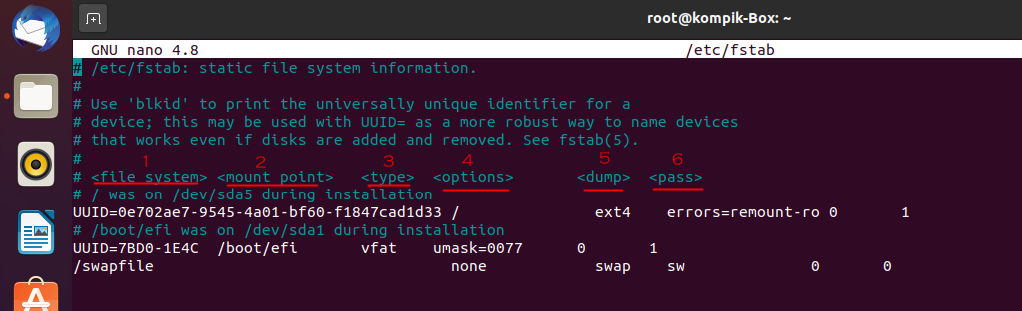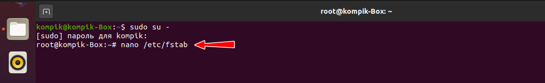 Открываю файл /etc/fstab: