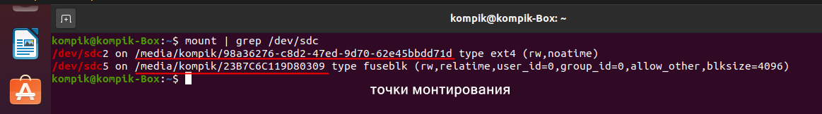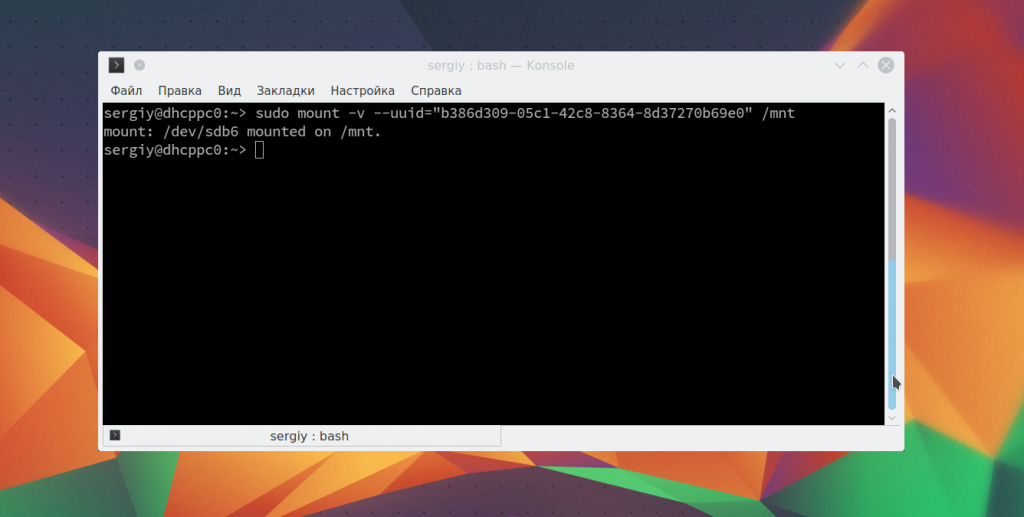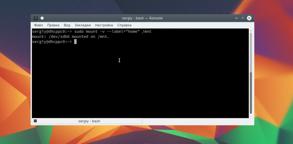 Монтирование с помощью команды mount