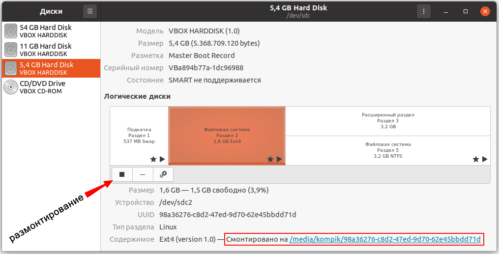 Но чтобы смонтировать нужный диск, нужно правильно указать его название или название его раздела.