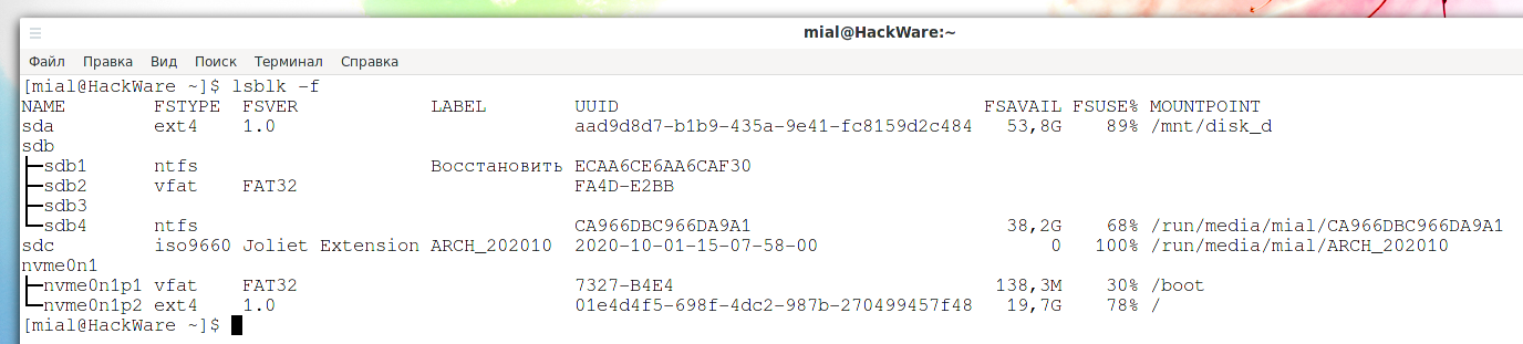 blkid /dev/РАЗДЕЛ