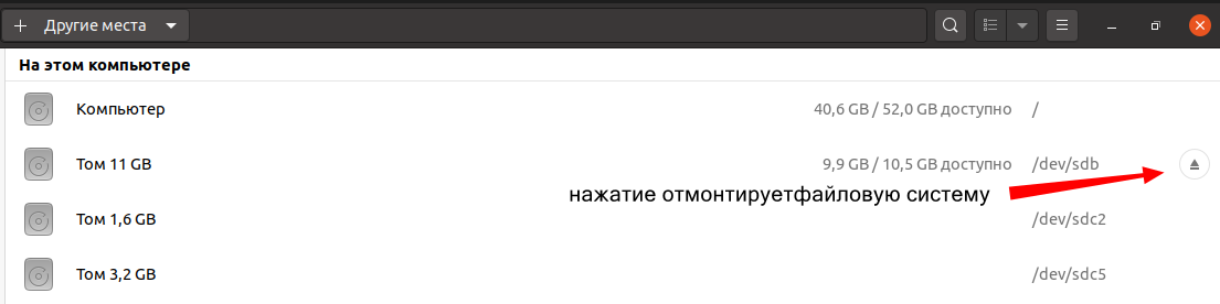 смонтируем и размонтируем устройство, введя соответствующие команды: