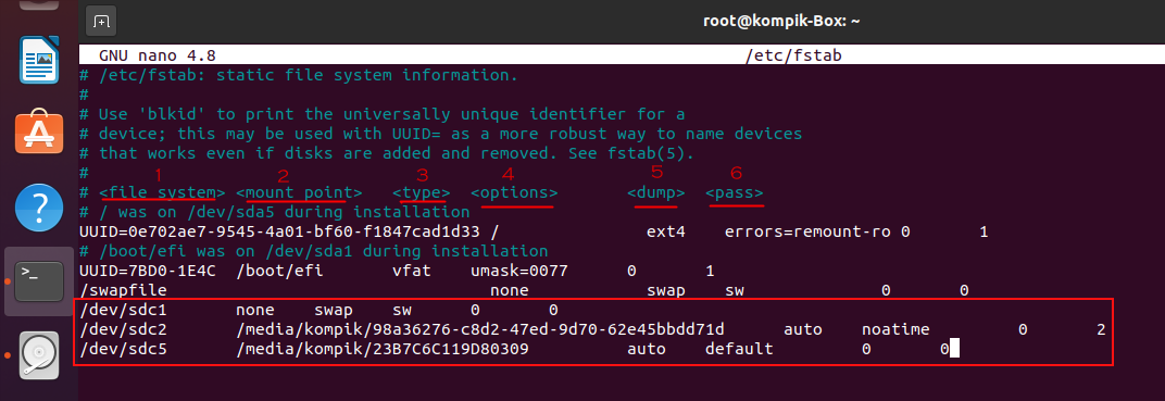 sudo gedit /etc/fstab