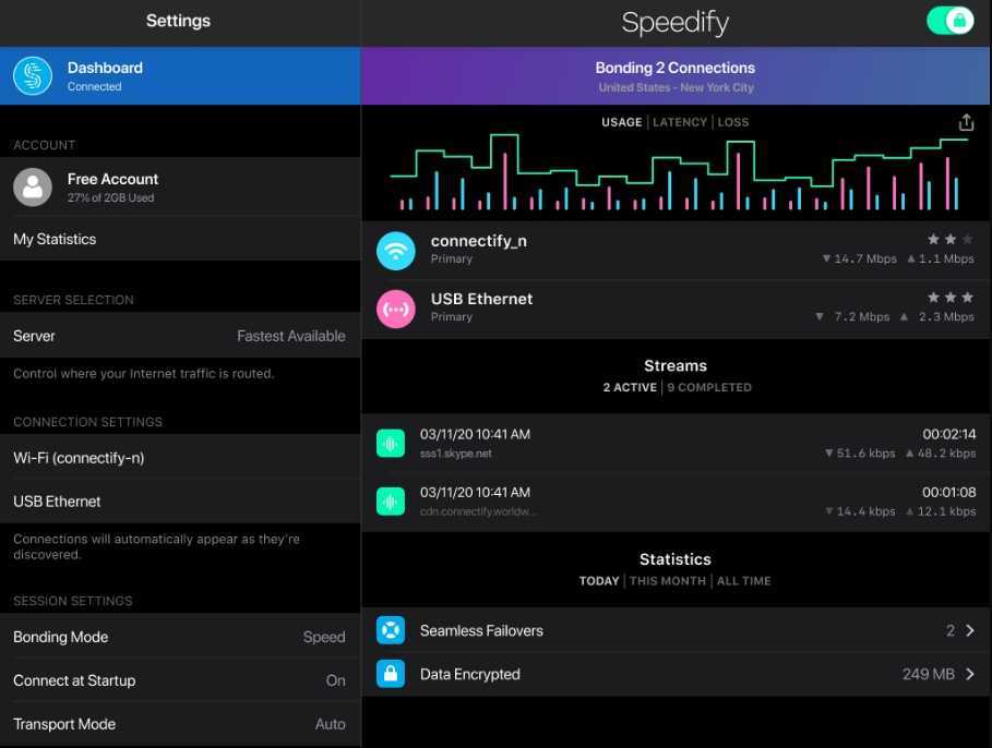 SPEEDIFY представляет собой удобный и стабильный VPN, но у него есть один весомый минус – новым пользователям дается слишком мало трафика (всего 2 ГБ в месяц). Поэтому его можно использовать только для онлайн-игр. При просмотре фильмов и скачивании контента из интернета данного приложения надолго не хватит.