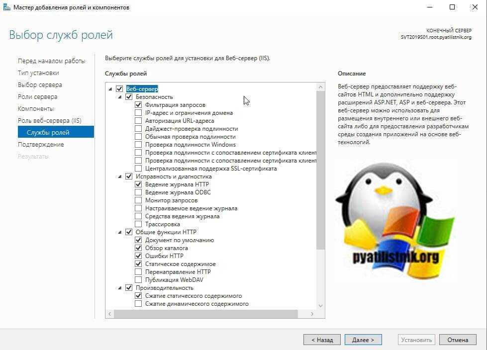 После этого вы можете, как в комбайне, добавить нужное количество дополнительных служб ролей, просто выставив соответствующие галки, я оставлю стандартно.