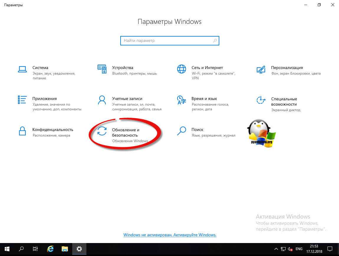 Третьим этапом базовой настройки сервера 2019, является установка самых последних обновлений безопасности. Нажмите горячую комбинацию Win+I, в результате чего у вас откроется окно «Параметры Windows». Выберите там пункт «Обновление и безопасность»