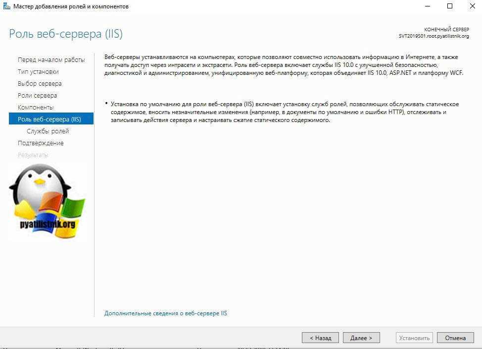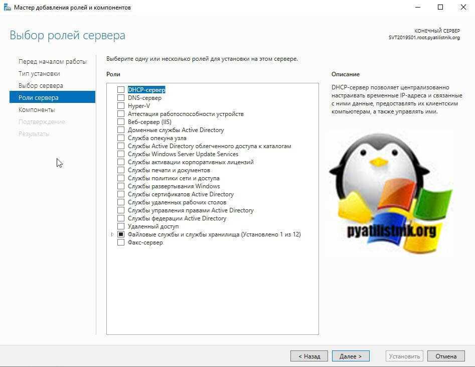 Начнется процесс установки роли