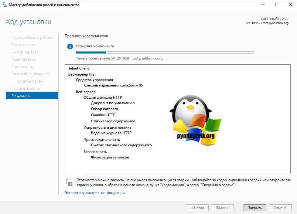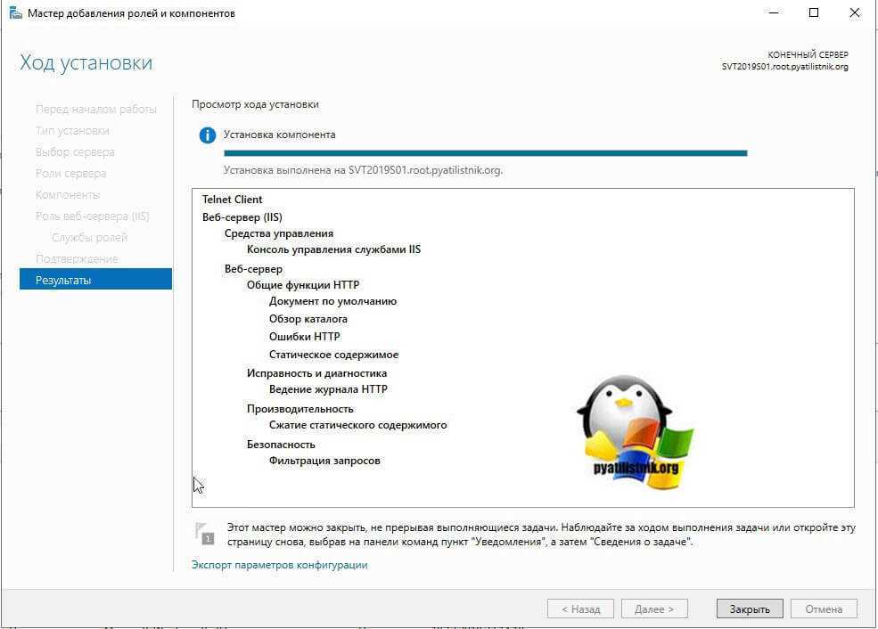 Установка роли успешно выполнена, можно закрывать окно.