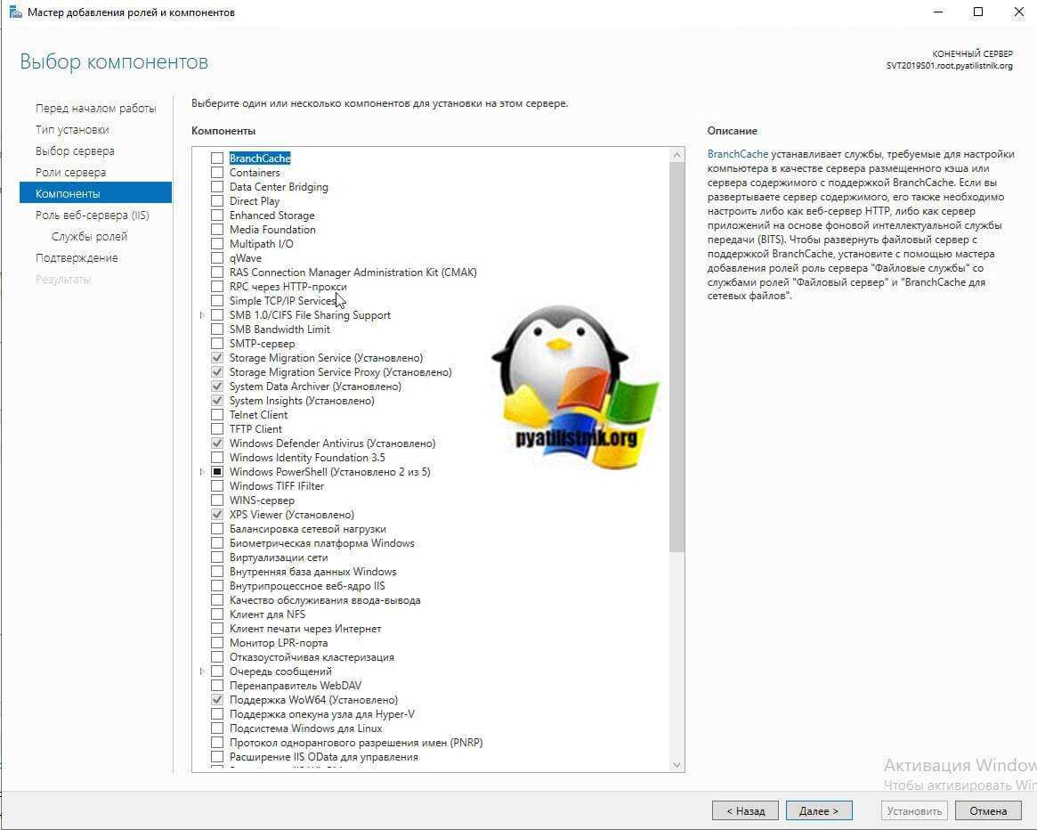 - Установить необходимые роли или компоненты.