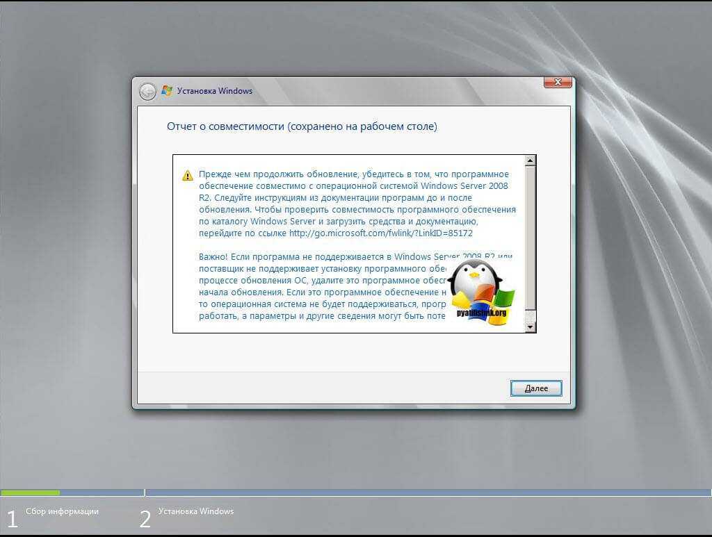 Если в отчете нет критических ошибок, то нажимаем далее.