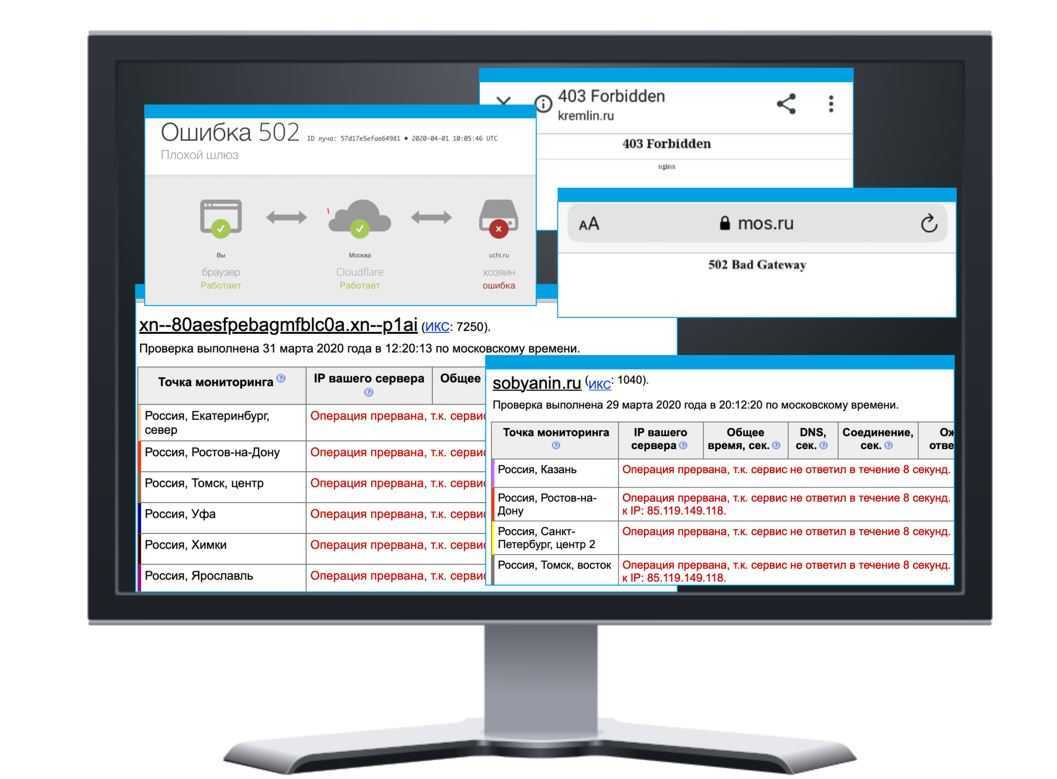 Вспышка нового коронавируса создала беспрецедентные лавинные нагрузки, которые приводили к кратковременным сбоям. На рис. 4 приведены единичные (не стоит этим спекулировать) факты недоступности государственных информационных систем общего пользования, как-то: kremlin.ru, mos.ru, стопкоронавирус.рф и sobyanin.ru в момент первичных срочных сообщений по ТВ, а также периодическое зависания любимого всеми школьниками портала домашних заданий — uchi.ru.