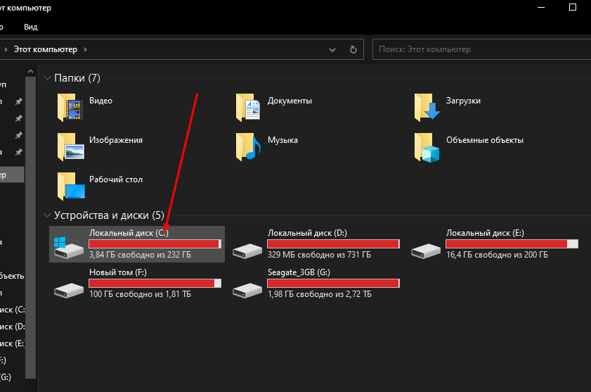 Заходим в диск С. Как правило, на нем хранятся все файлы «родных» программ.