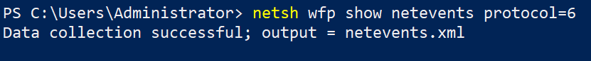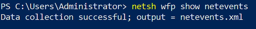 Now, run the below command to save a list of network traffic events () to a file called netevents.xml in the working directory by default.
