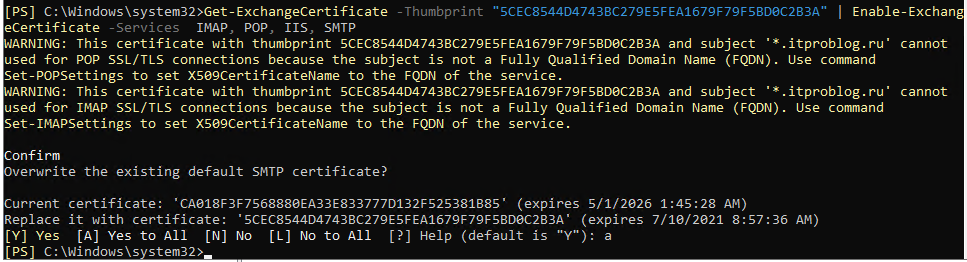 Поскольку мы уже выпускали бесплатный сертификат для нашего сервера Exchange 2016, то мы будем использовать его.