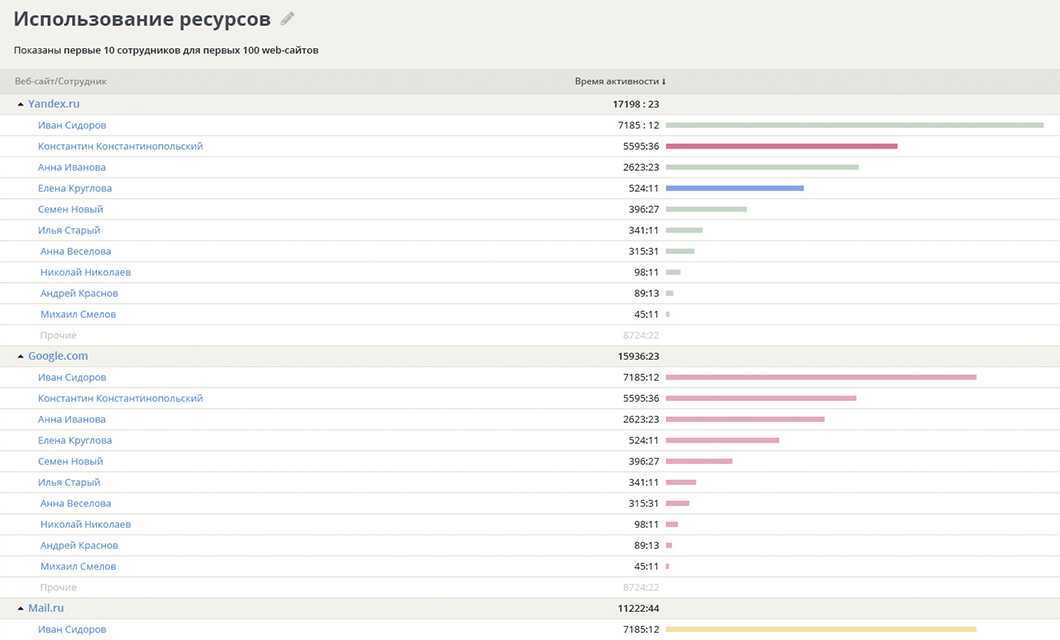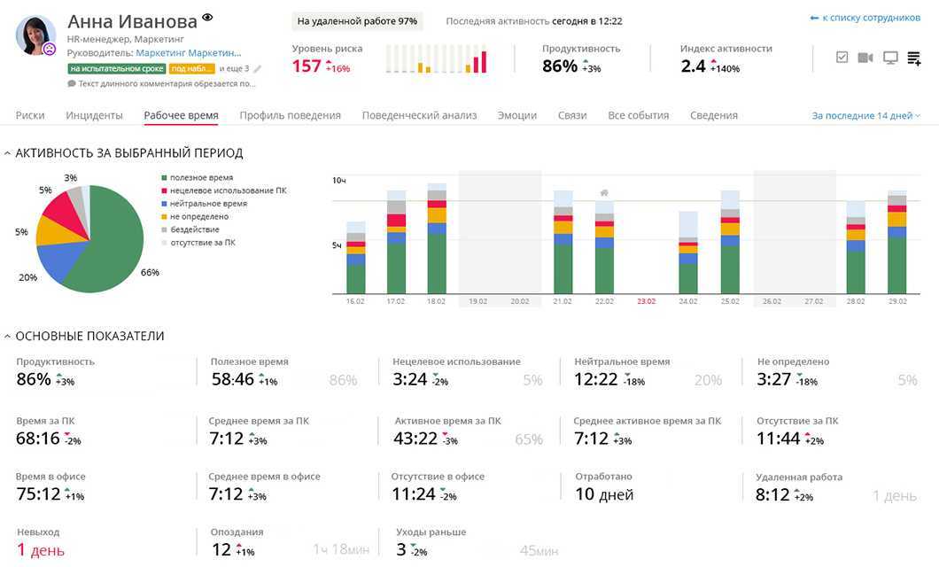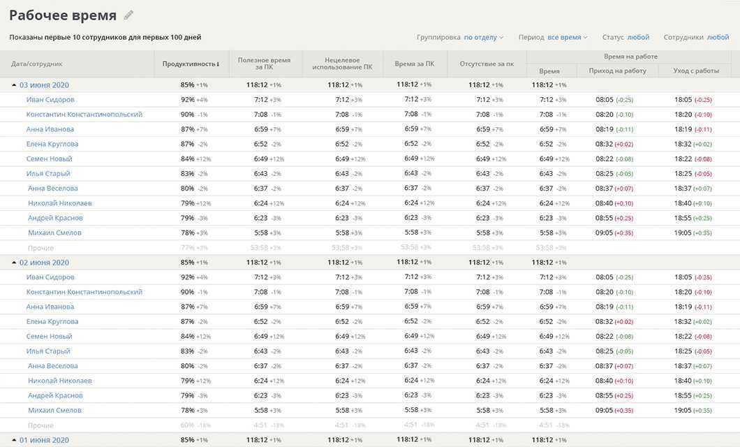 Все активности разделяются в системе на нейтральные, продуктивные и нежелательные. В результате модуль автоматически подсчитывает и показывает продуктивность каждого сотрудника